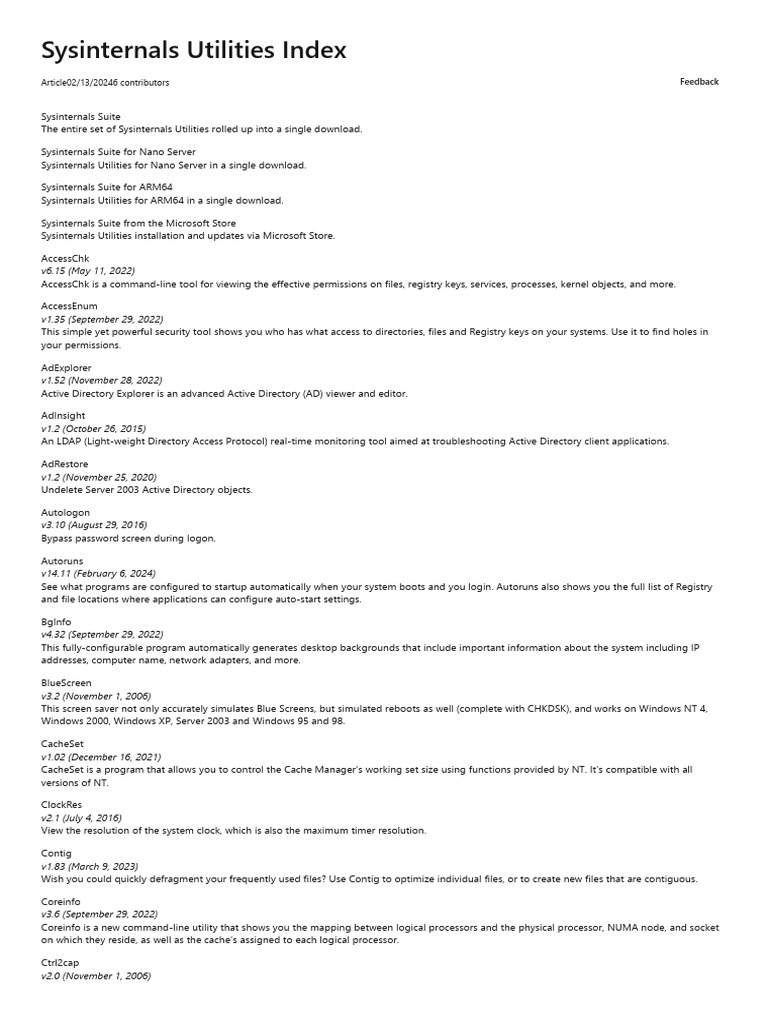 The entire set of Sysinternals Utilities rolled up into a single download.