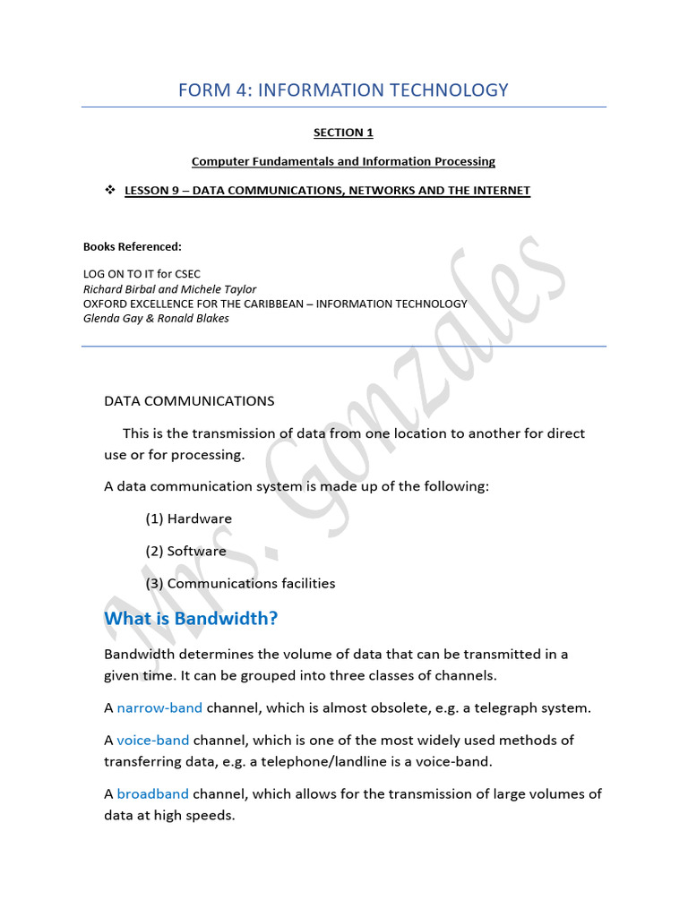 ❖ LESSON 9 – DATA COMMUNICATIONS, NETWORKS AND THE INTERNET