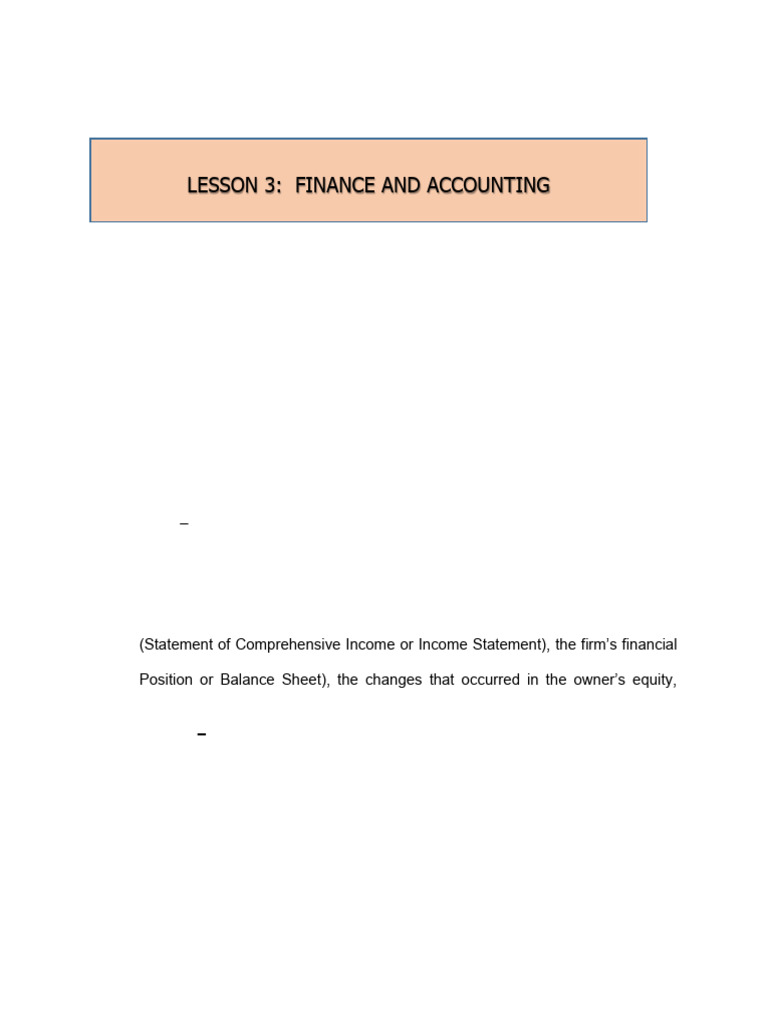 (Statement of Comprehensive Income or Income Statement), the firm’s financial