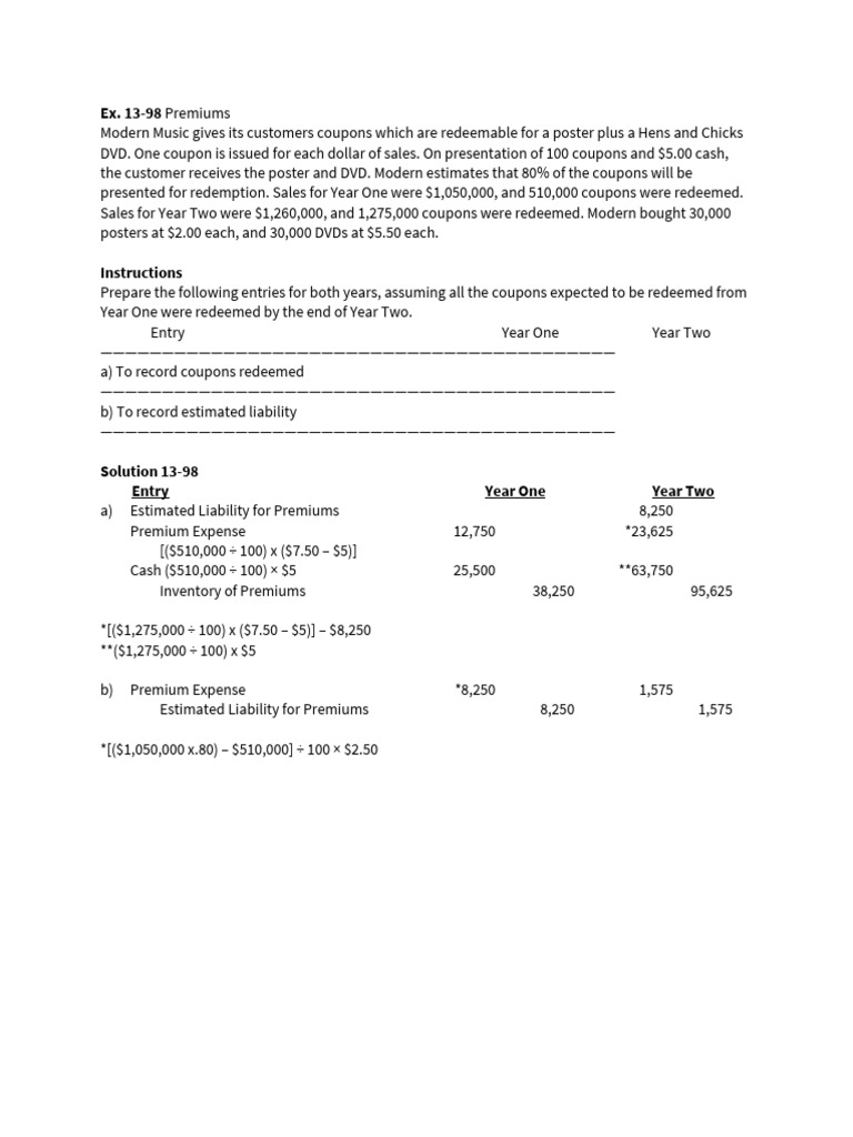 Prepare the following entries for both years, assuming all the coupons expected to be redeemed from