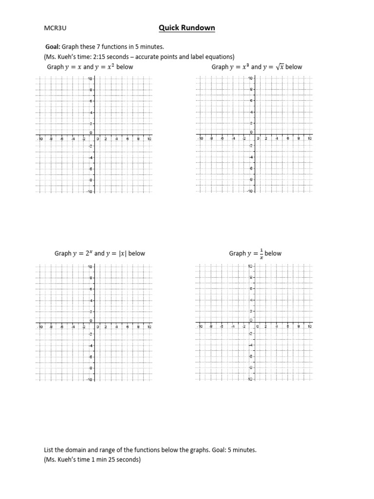 List the domain and range of the functions below the graphs. Goal: 5 minutes.
