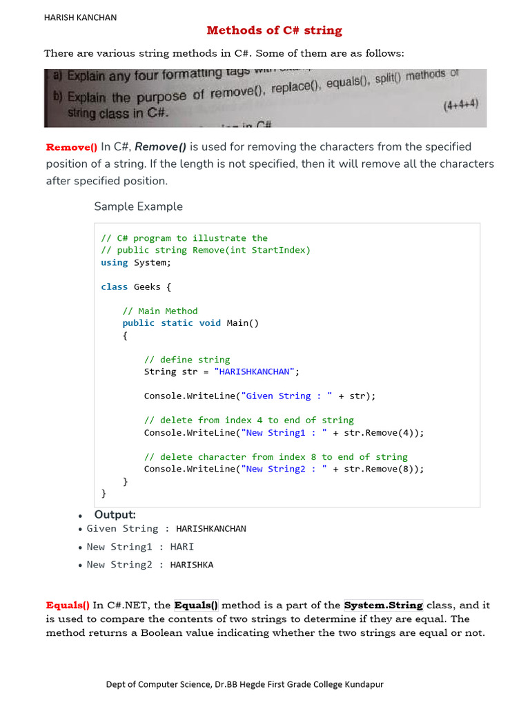 Equals() In C#.NET, the Equals() method is a part of the System.String class, and it