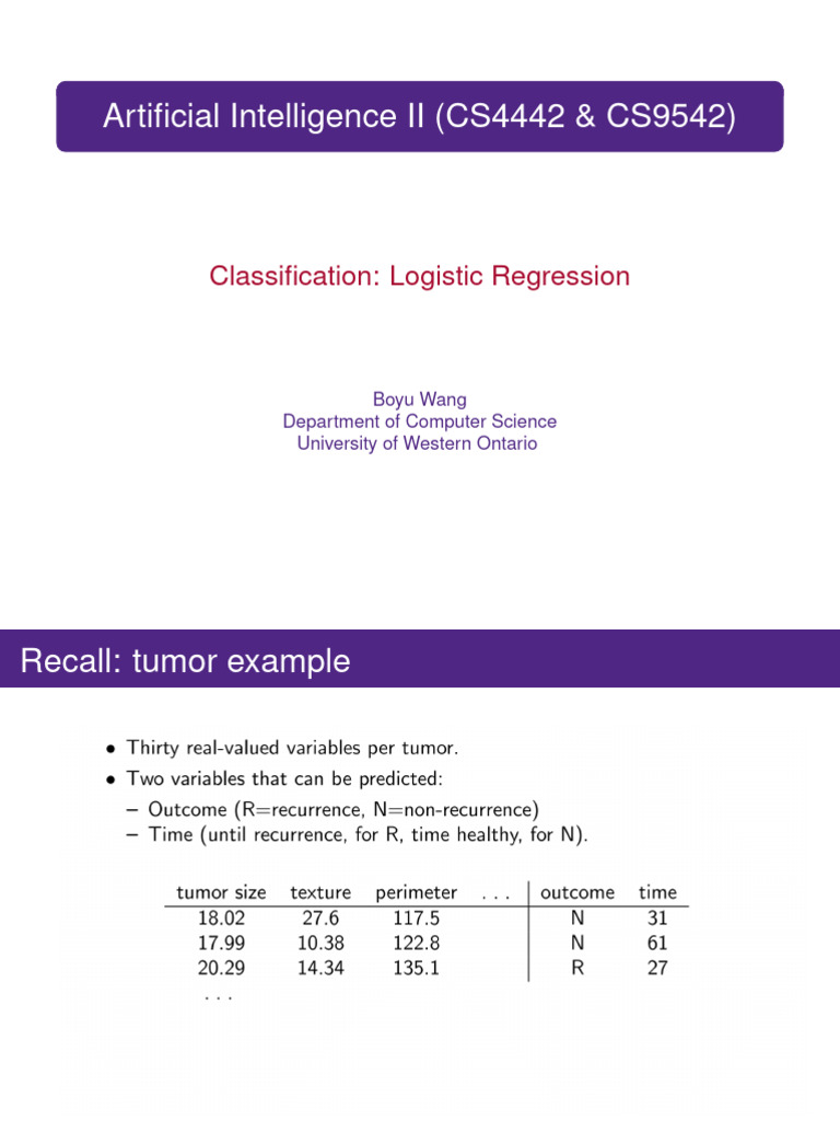 I If y ∈ {0, 1}, this is the binary classification problem.
