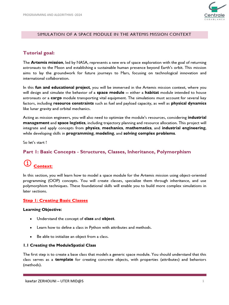 In this section, you will learn how to model a space module for the Artemis mission using object-oriented