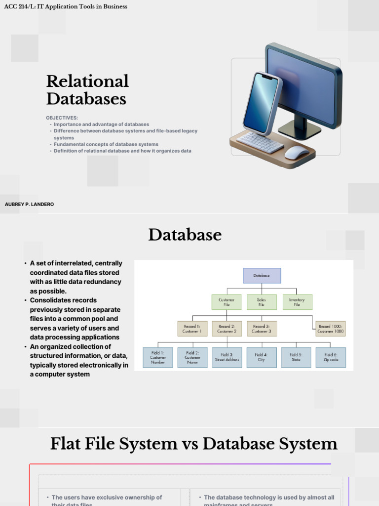 • Definition of relational database and how it organizes data