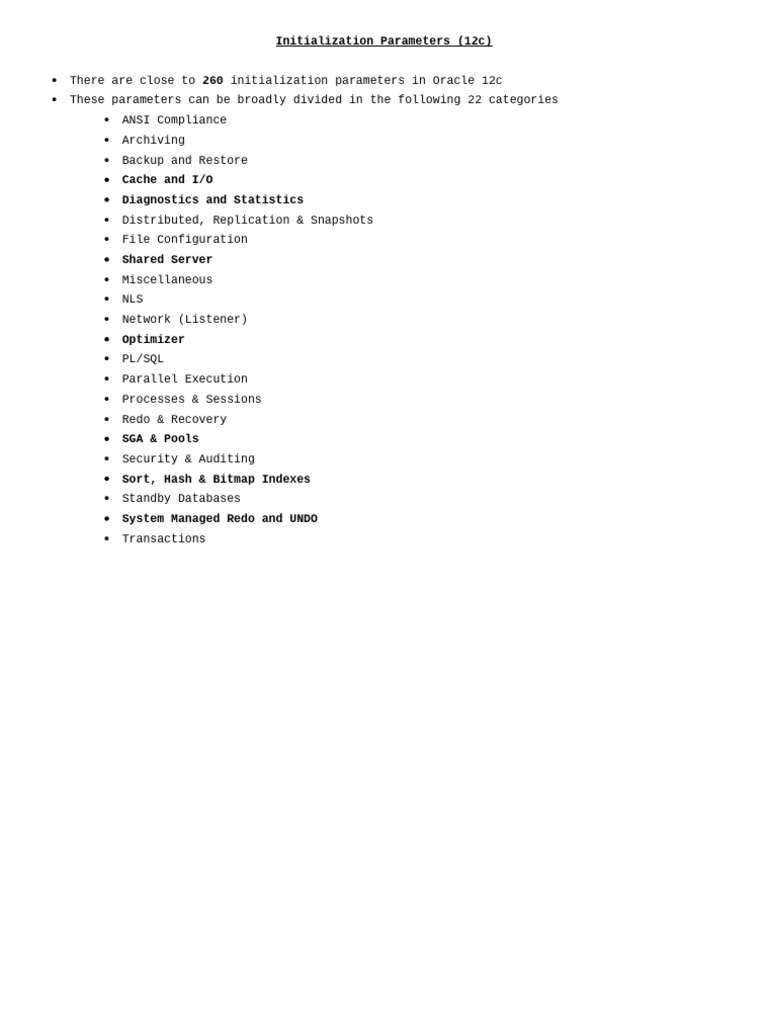 7) Shared_pool_reerved_size Default value is 5% of shared_pool_size.