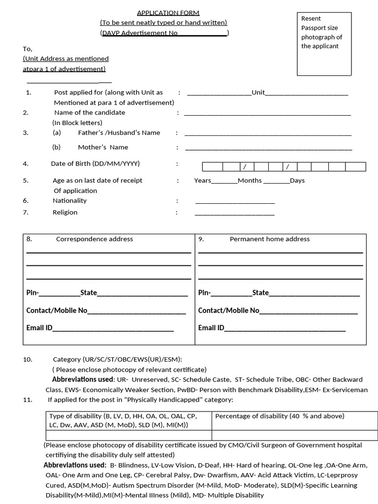 1. Post applied for (along with Unit as : _________________Unit______________________