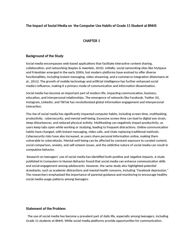 The Impact of Social Media on the Computer Use Habits of Grade 11 Student at BNHS