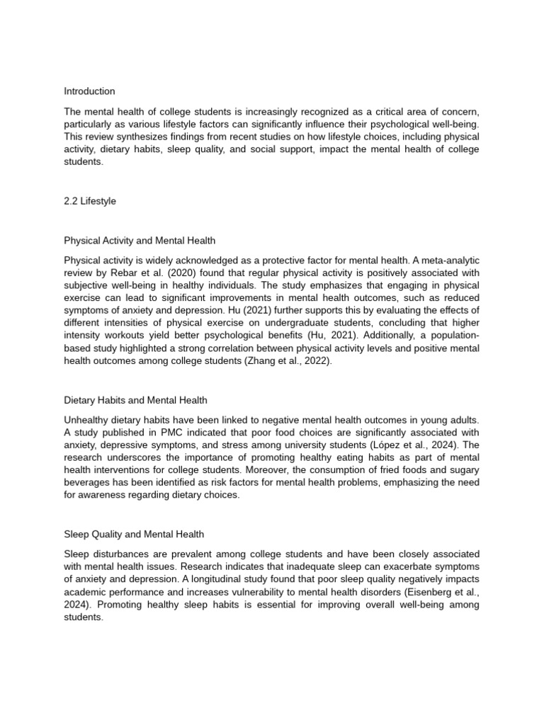 The literature reviewed indicates a strong connection between lifestyle factors and the mental
