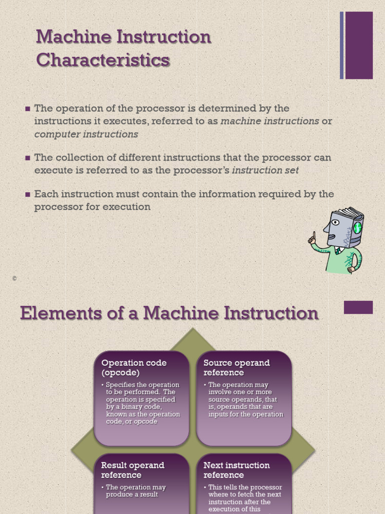 • How many and which • The various types of data • Instruction length in bits, • Number of processor • The mode or modes by