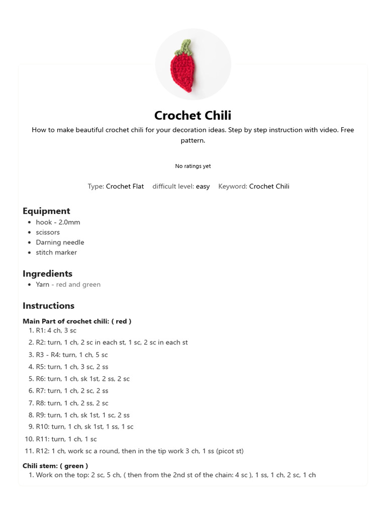 Type: Crochet Flat difficult level: easy Keyword: Crochet Chili