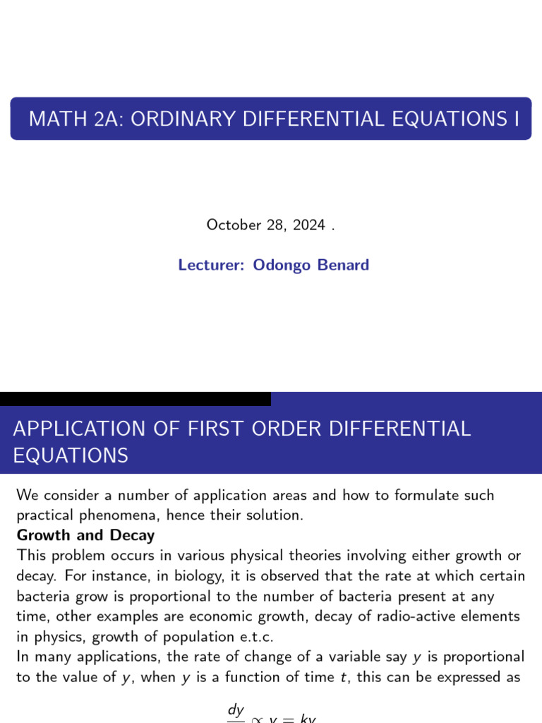 MATH 2A: ORDINARY DIFFERENTIAL EQUATIONS I