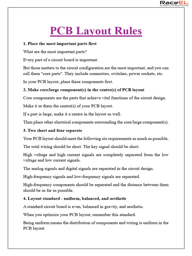 2. Make core/large component(s) in the centre(s) of PCB layout