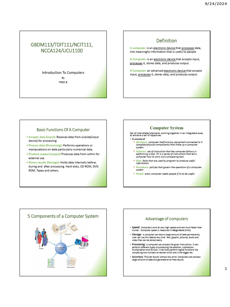GBDM113/TDIT111/NCIT111, A computer: is an electronic device that processes data,