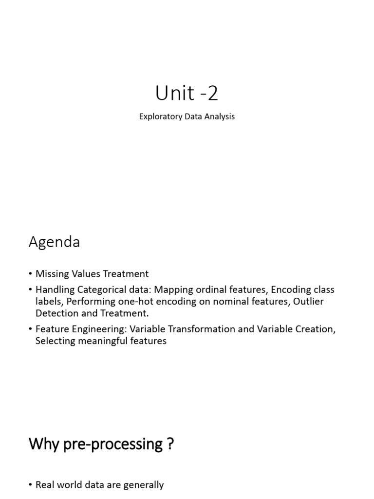 • Feature Engineering: Variable Transformation and Variable Creation,