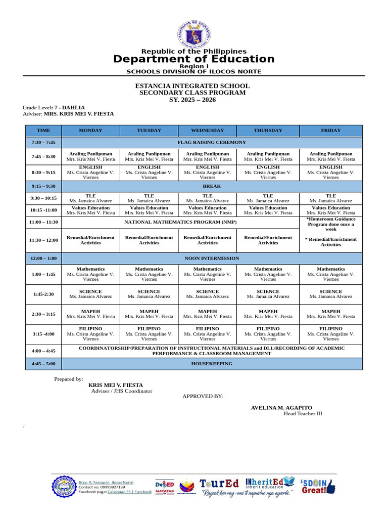 JHS Coordinator/LSB Teacher /Grade 7 – Dahlia Adviser