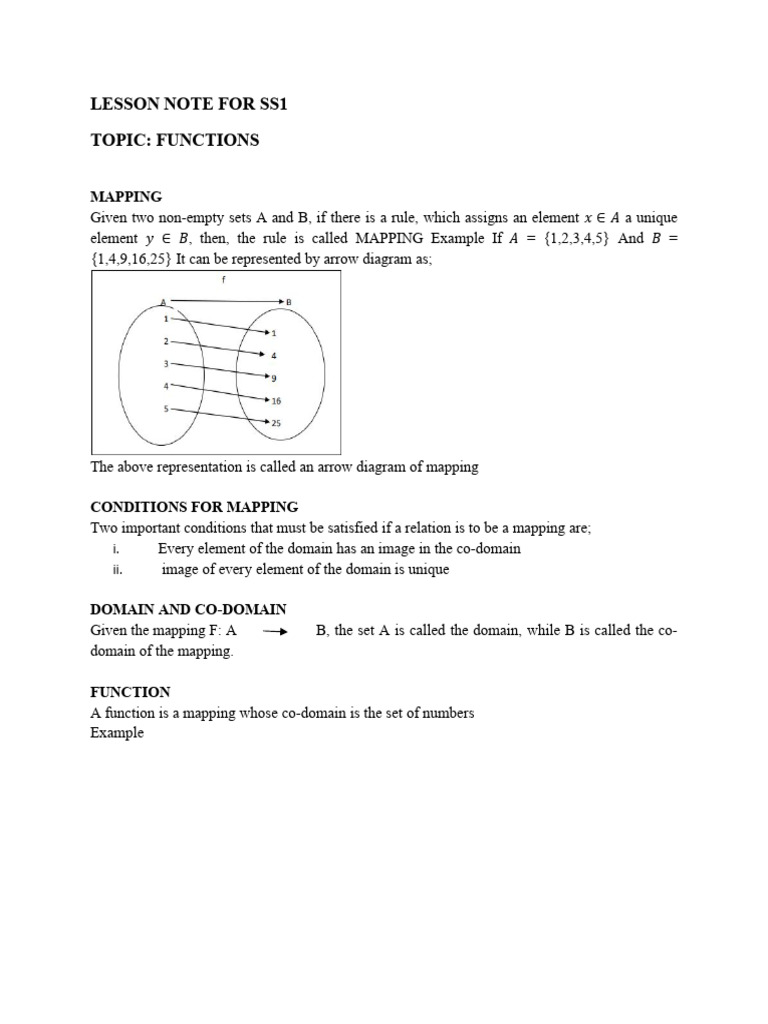 {1,4,9,16,25} It can be represented by arrow diagram as;