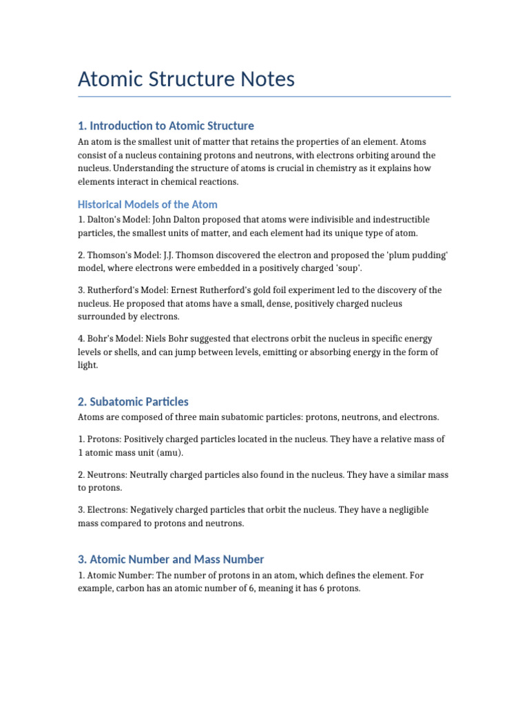 1. Atomic Number: The number of protons in an atom, which defines the element. For