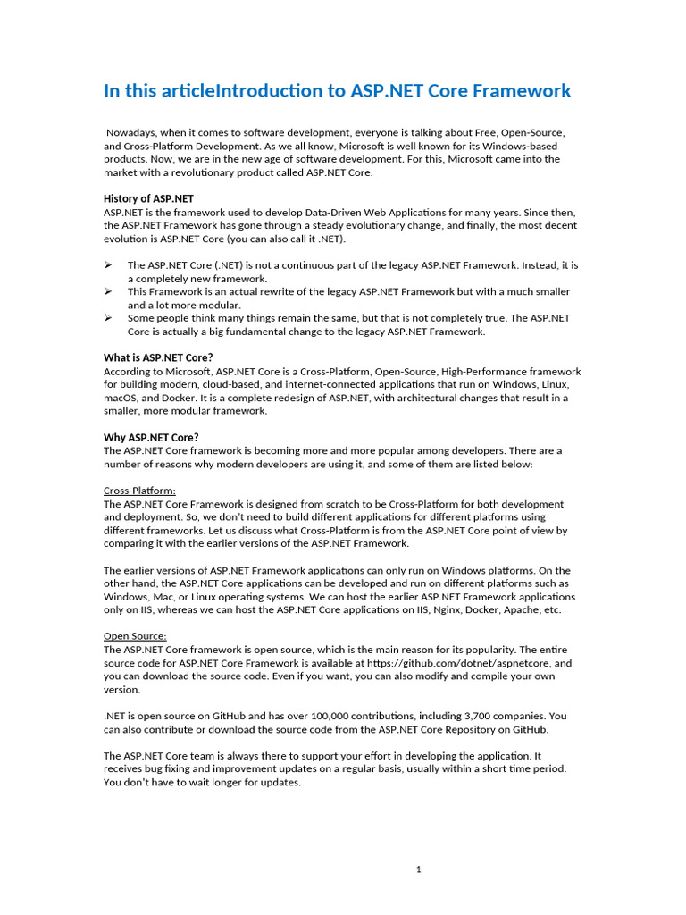 1. ASP.NET Core is an Open-Source, Cross-Platform Framework using which we can develop different