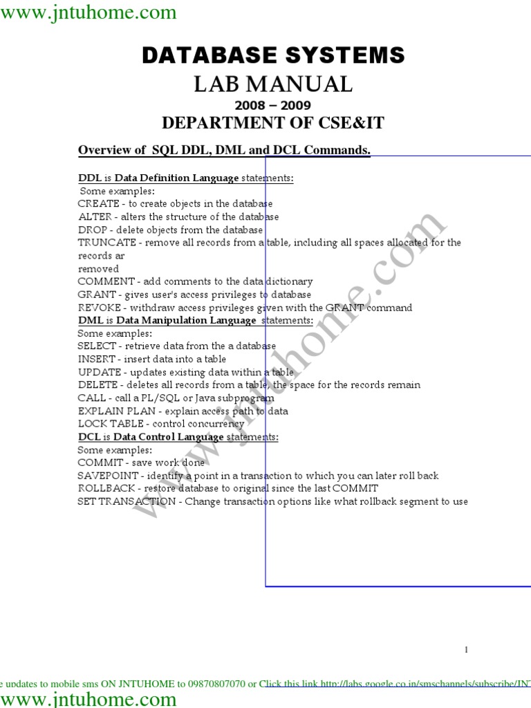 JNTU B.tech DBMS Lab Manual All Queries and Programs