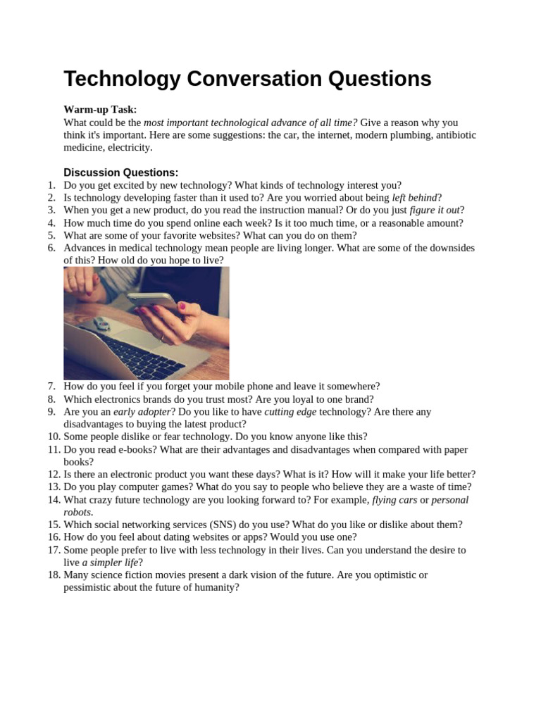 1. Do you get excited by new technology? What kinds of technology interest you?