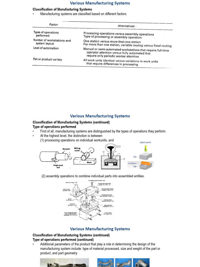 • First of all, manufacturing systems are distinguished by the types of operations they perform.