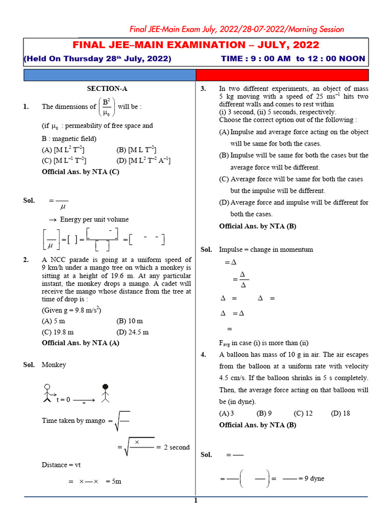 Official Ans. by NTA (A)