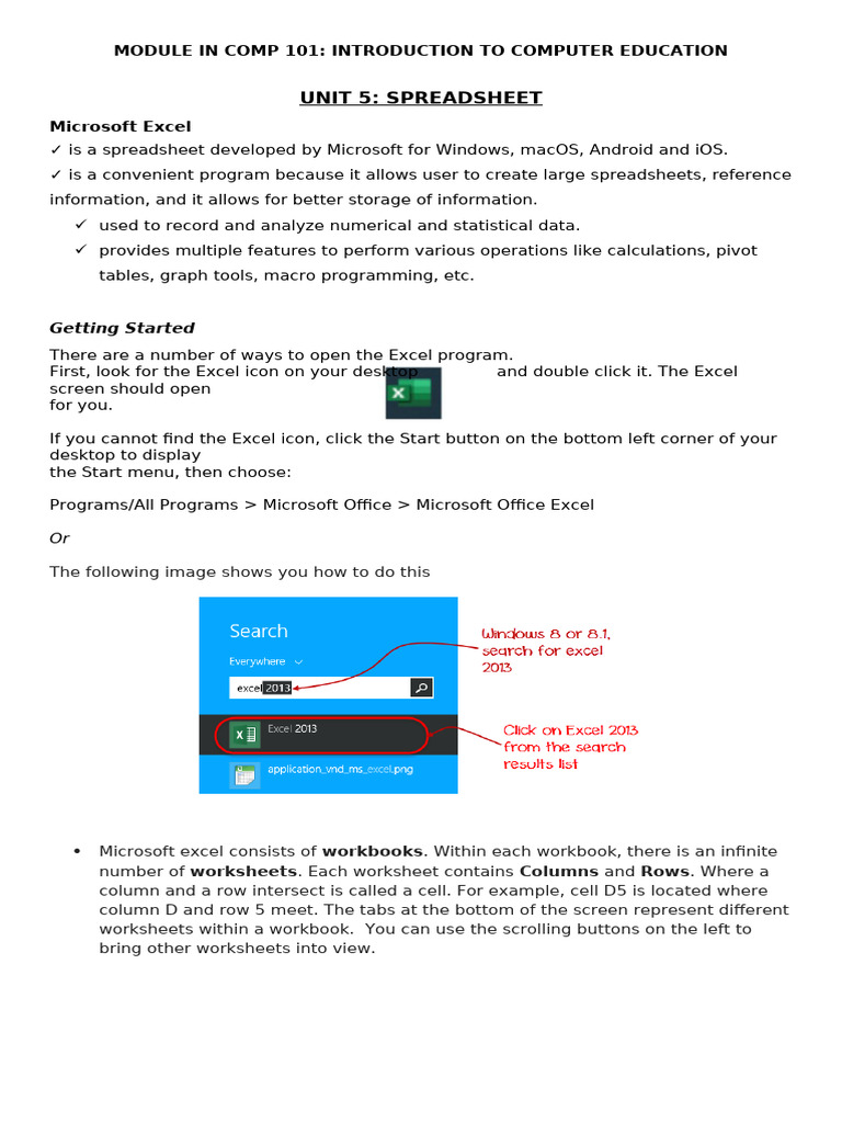 MODULE IN COMP 101: INTRODUCTION TO COMPUTER EDUCATION