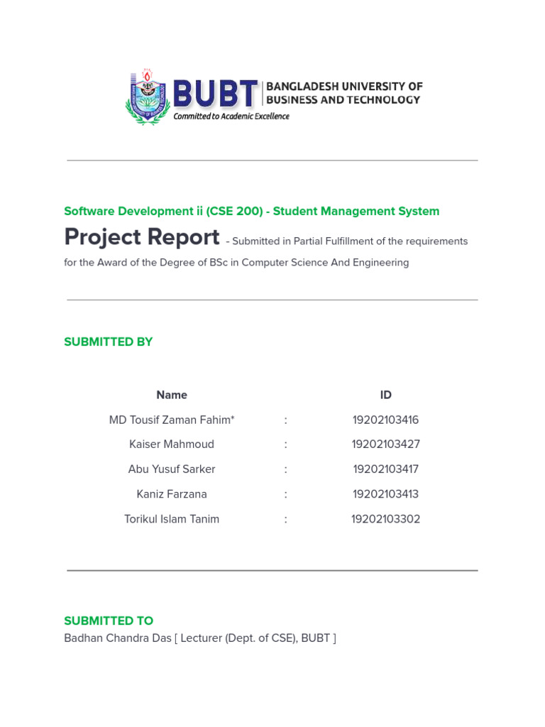 This project “Student Management System” Submitted by MD Tousif Zaman Fahim* ( ID -