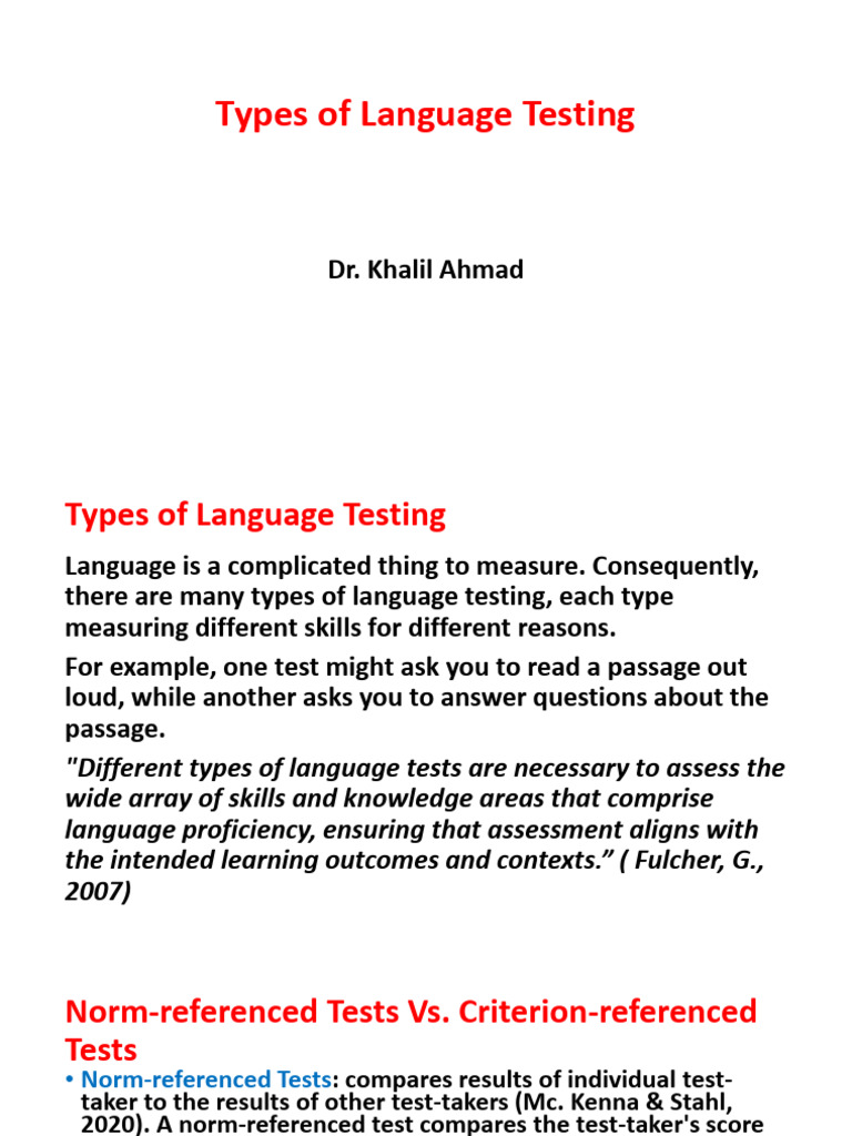 there are many types of language testing, each type