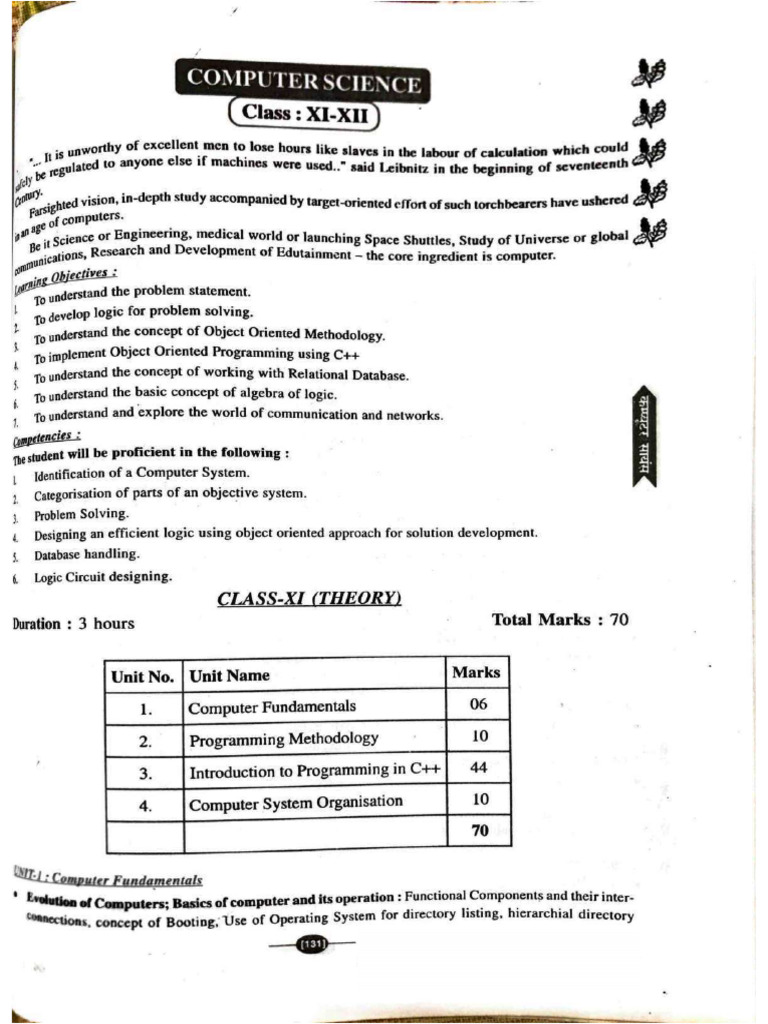 1.1 The academic course in Computer Science includes