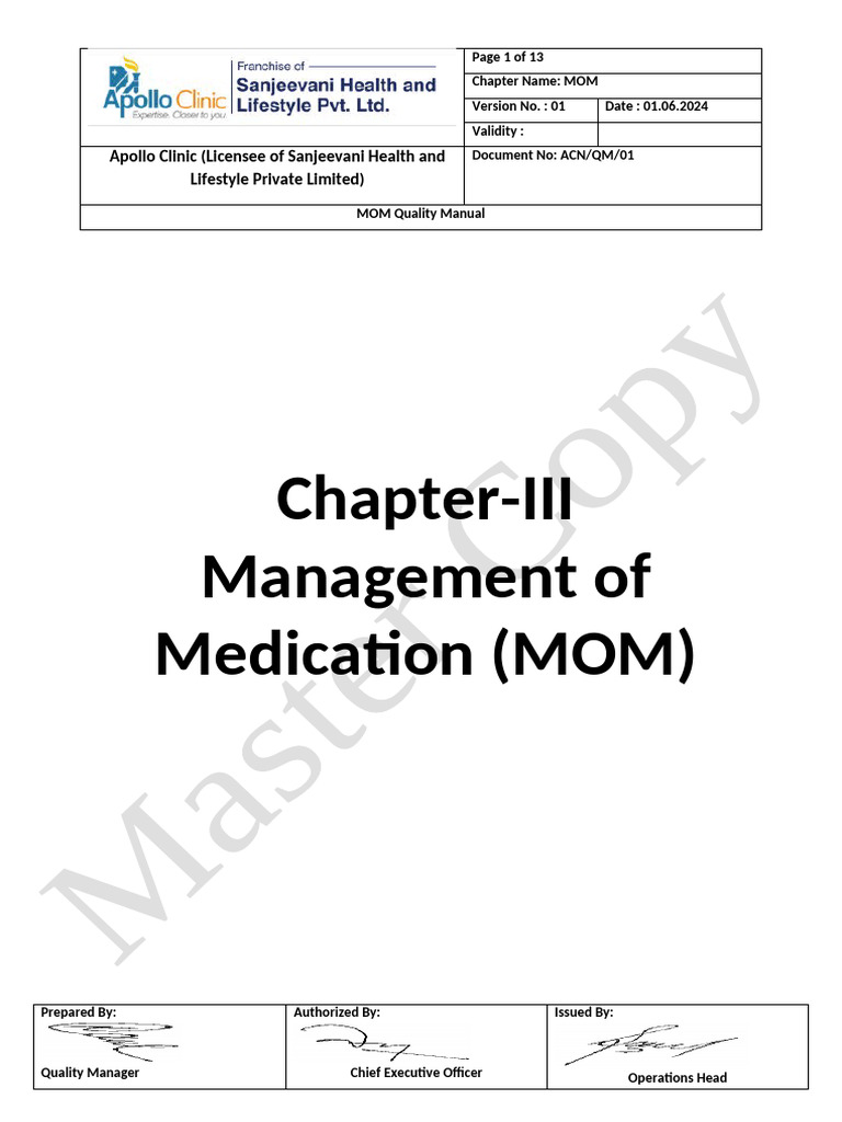 Apollo Clinic (Licensee of Sanjeevani Health and Document No: ACN/QM/01
