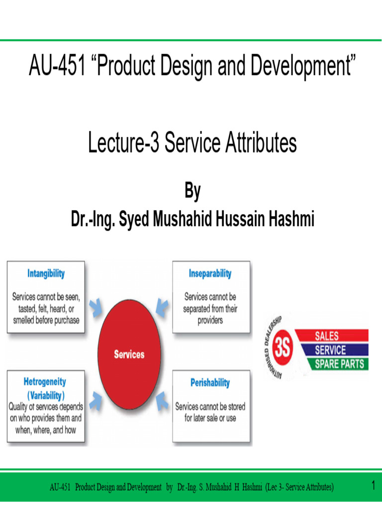 AU-451 Product Design and Development by Dr.-Ing. S. Mushahid H Hashmi (Lec 3- Service Attributes) 1