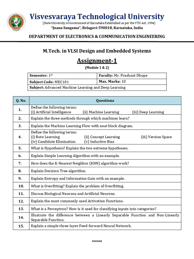 Subject: Advanced Machine Learning and Deep Learning
