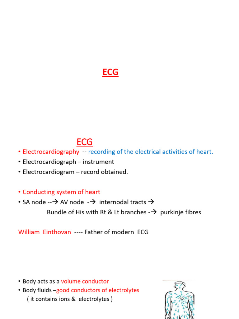 • Waves of ECG - due to depol and repolarization, not due to contra.