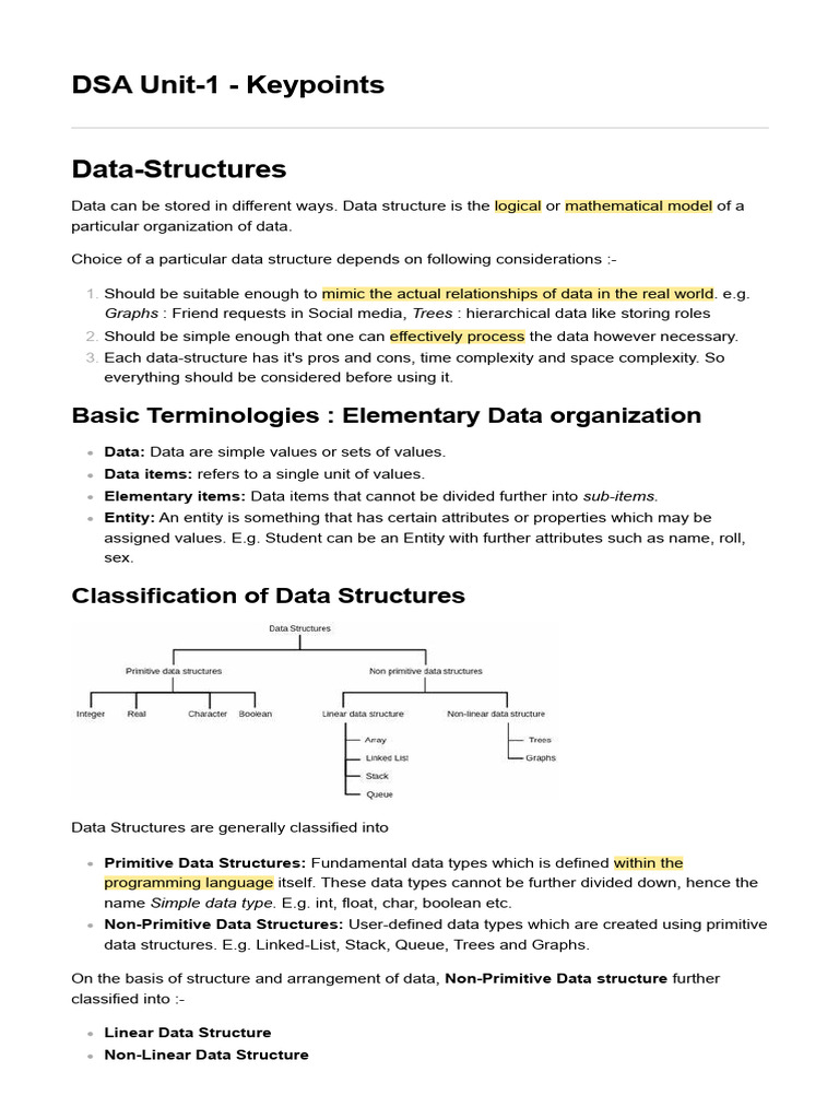 DSA Unit-1 - Keypoints