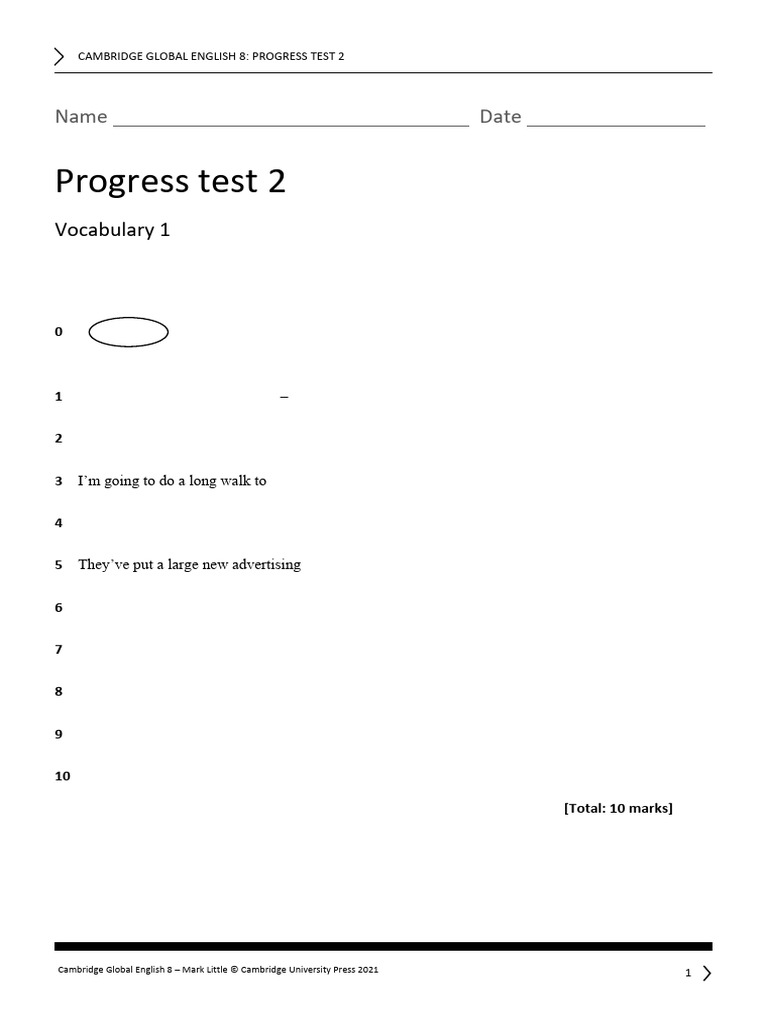 CAMBRIDGE GLOBAL ENGLISH 8: PROGRESS TEST 2