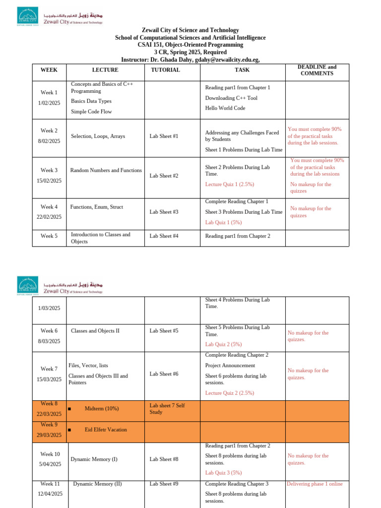 Instructor: Dr. Ghada Dahy, gdahy@zewailcity.edu.eg,
