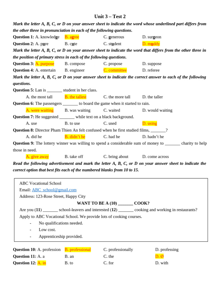Question 1: A. knowledge B. agree C. generous D. surgeon
