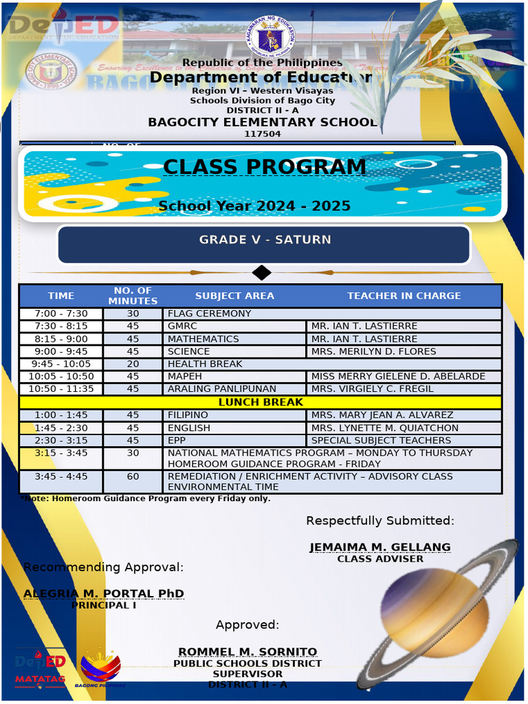 10:05 - 10:50 45 MAPEH MISS MERRY GIELENE D. ABELARDE
