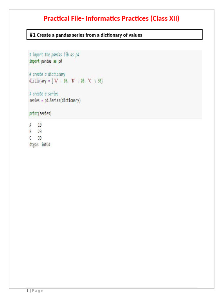 Practical File- Informatics Practices (Class XII)