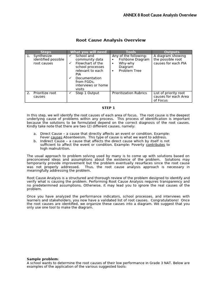 was not properly addressed. Thus, the root cause analysis approach is necessary in