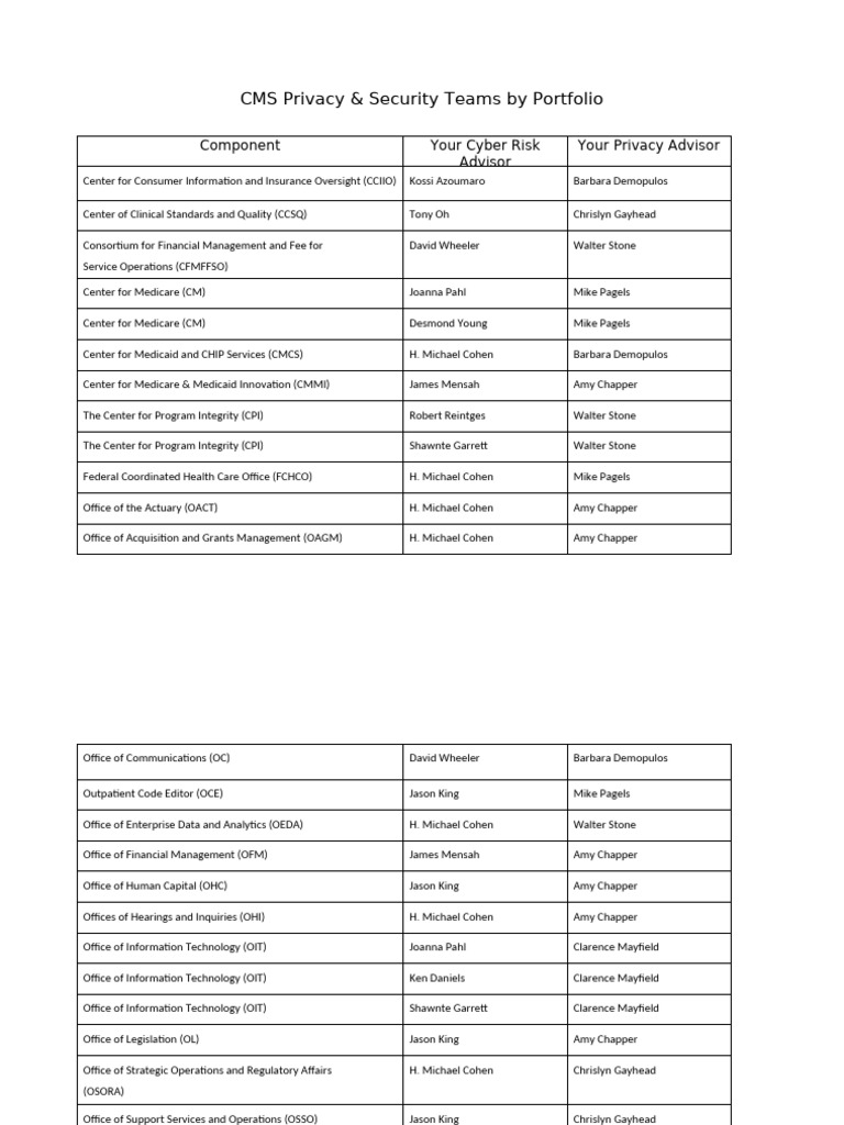CMS Privacy & Security Teams by Portfolio