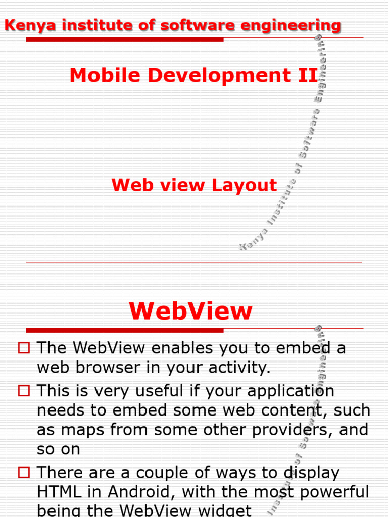 URL: www.KenyaInstituteofsoftwareengineering.com Lecturer: Mr. John Kinyanjui