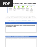 wellbeing at the time of completing the survey. wellbeing was Exercise.