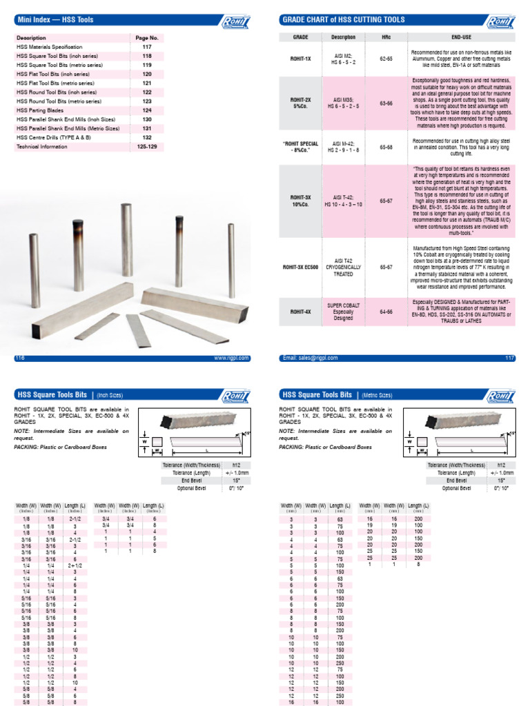 ROHIT SQUARE TOOL BITS are available in ROHIT SQUARE TOOL BITS are available in