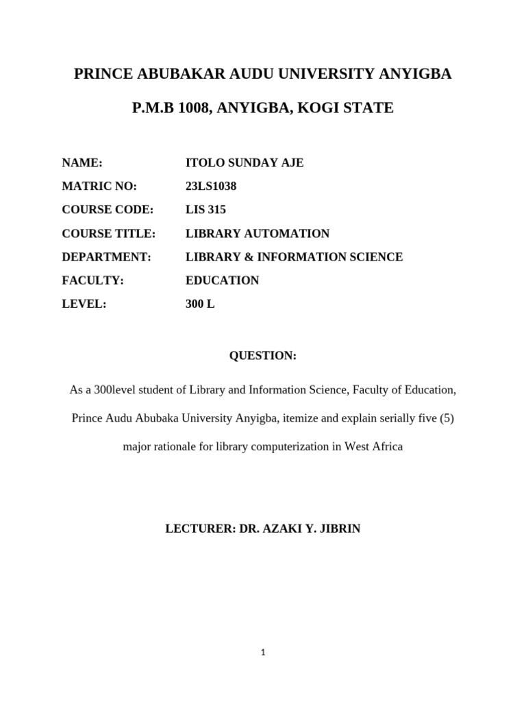 PRINCE ABUBAKAR AUDU UNIVERSITY ANYIGBA