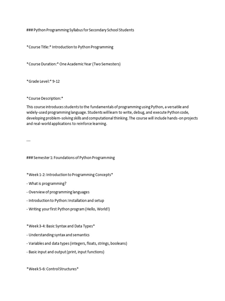 ### Python Programming Syllabus for Secondary School Students