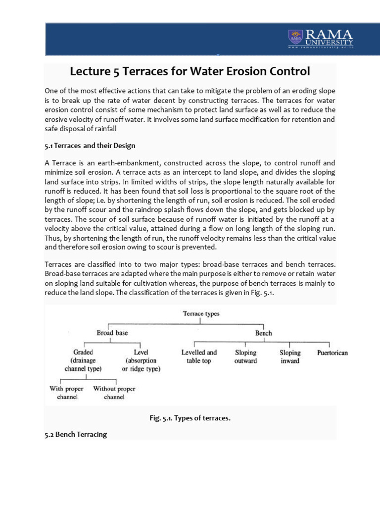 retaining walls. In fact, bench terrace converts the long un-interrupted slope into several