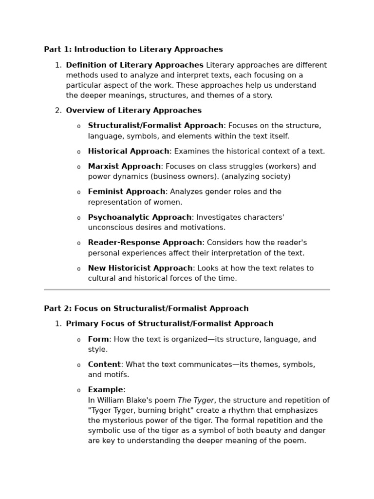 o Structuralist/Formalist Approach: Focuses on the structure,